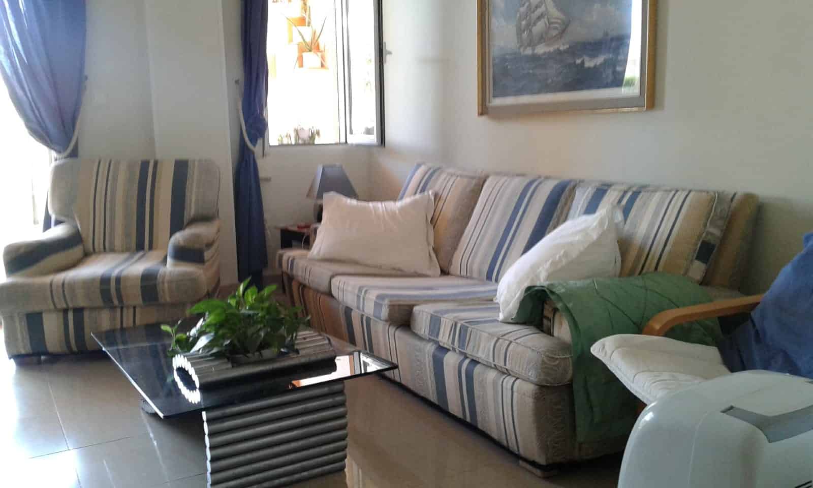 Se alquila fantástico apartamento del año 2001 con todos los servicios. vivienda a pie de jardÃn distribuido en tres amplias habitaciones con armarios empotrados vestidos y forrados, 2 baños completos (1 en suite), salón- comedor, cocina independiente con accesos a salón y terraza de 20 metros.Â