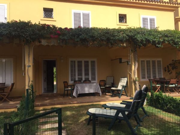 Chalet adosado en uranización con piscina y jardines. Plaza de garaje dentro de la urbanización. Cuenta con 3 habitaciones, una de matrimonio y otras dos con camas individuales y cada una con su supletoria. Sofia cama. Consta de 3 baños dos con bañera y uno con ducha. Terraza con jardín.