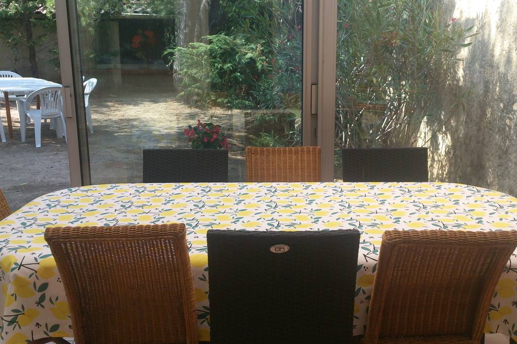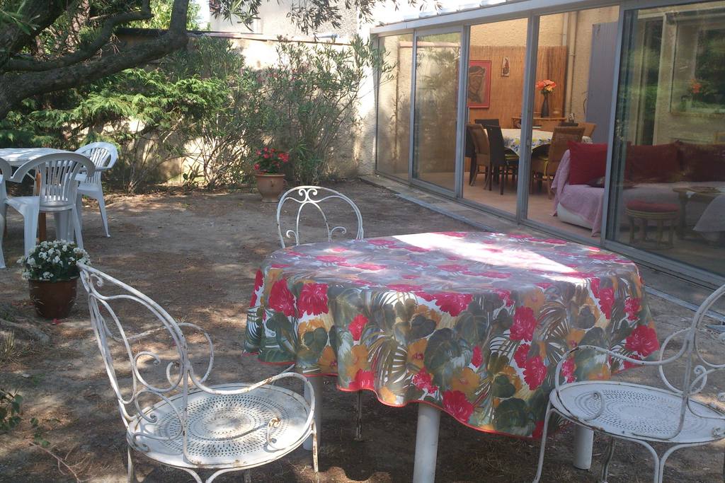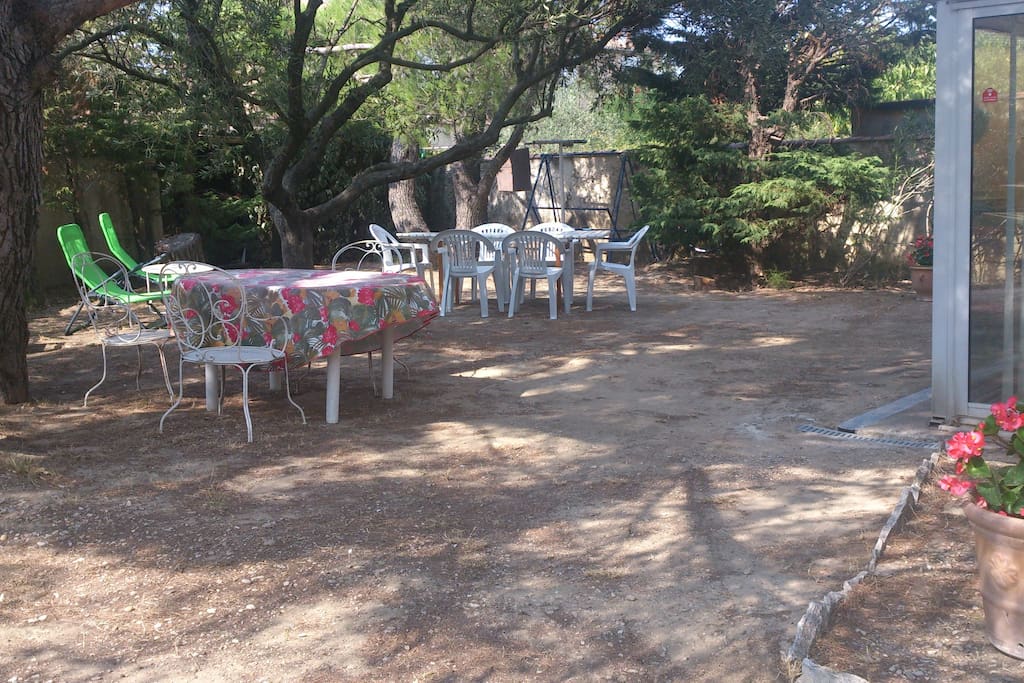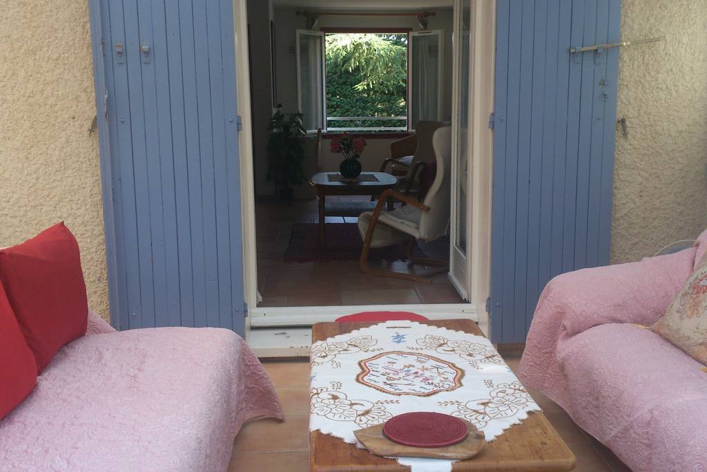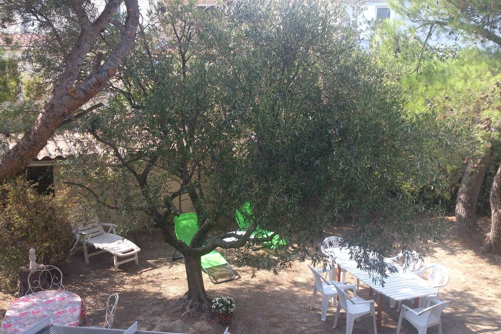 Villa with rooms on the floor. Garden with trees (umbrella pine, Aleppo pine, olive tree, poplar, cypress hedge) and furniture. Spacious veranda with bay windows: lounge area with 2 sofas, dining area. Car park.