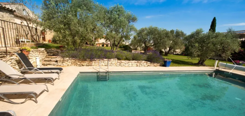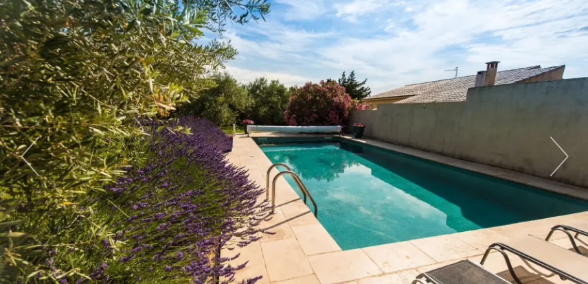 Grand Jardin clos, Planté de beaux oliviers, Sur une pelouse soignée en bordure de la piscine. Possibilité de repas Dans la maison de la piscine sur la piscine Donnant, ou Encore devant le barbecue sur Une table de grande en pierre devant le four à pizza.