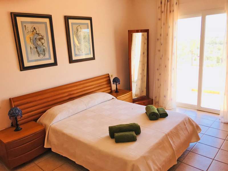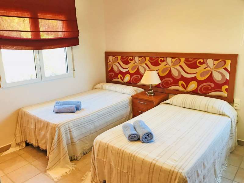 La villa se distribuye en dos plantas: en la planta baja se encuentra el hall, un espacioso salón comedor de grandes ventanales con acceso a una terraza cubierta y a la terraza descubierta de la piscina. una cocina totalmente equipada con menaje para diez personas, con horno, microondas, lavavajillas, etc. en esta planta hay dos dormitorios dobles con armarios empotrados, un baño con ducha grande y un aseo de cortesÃa.