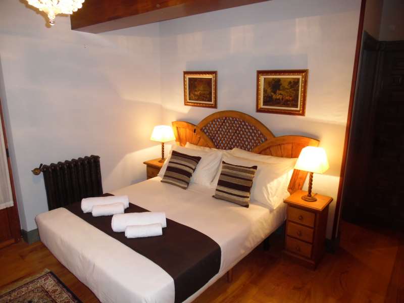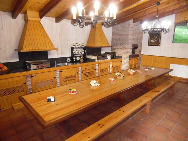 La casa se divide en tres plantas. En la planta baja se encuentra un gran salón comedor con Televisión y chimenea donde pueden descansar después de un dÃa disfrutando del maravilloso entorno que ofrece la zona, desde la planta baja también accederán a su inmenso jardÃn donde podrán recrearse en el merendero observando las vistas y escuchar el relajante sonido del rÃo Asón , además cuenta con un porche cubierto donde tener una buena velada todos los inquilinos al contar con una gran mesa. En la primera planta hay tres habitaciones con camas dobles, cada una tiene su propio baño con plato de ducha privado. También hay un gran balcón cubierto con vistas a las montañas y asientos confortables. La segunda planta consta de cuatro habitaciones, una con cama doble y tres habitaciones con dos camas individuales. Igualmente todas las habitaciones tienen su propio baño privado. Una gran cocina exterior totalmente equipada adyacente a la casa que contiene todas las comodidades necesarias tanto como para hacer una barbacoa o usar el horno de leña.