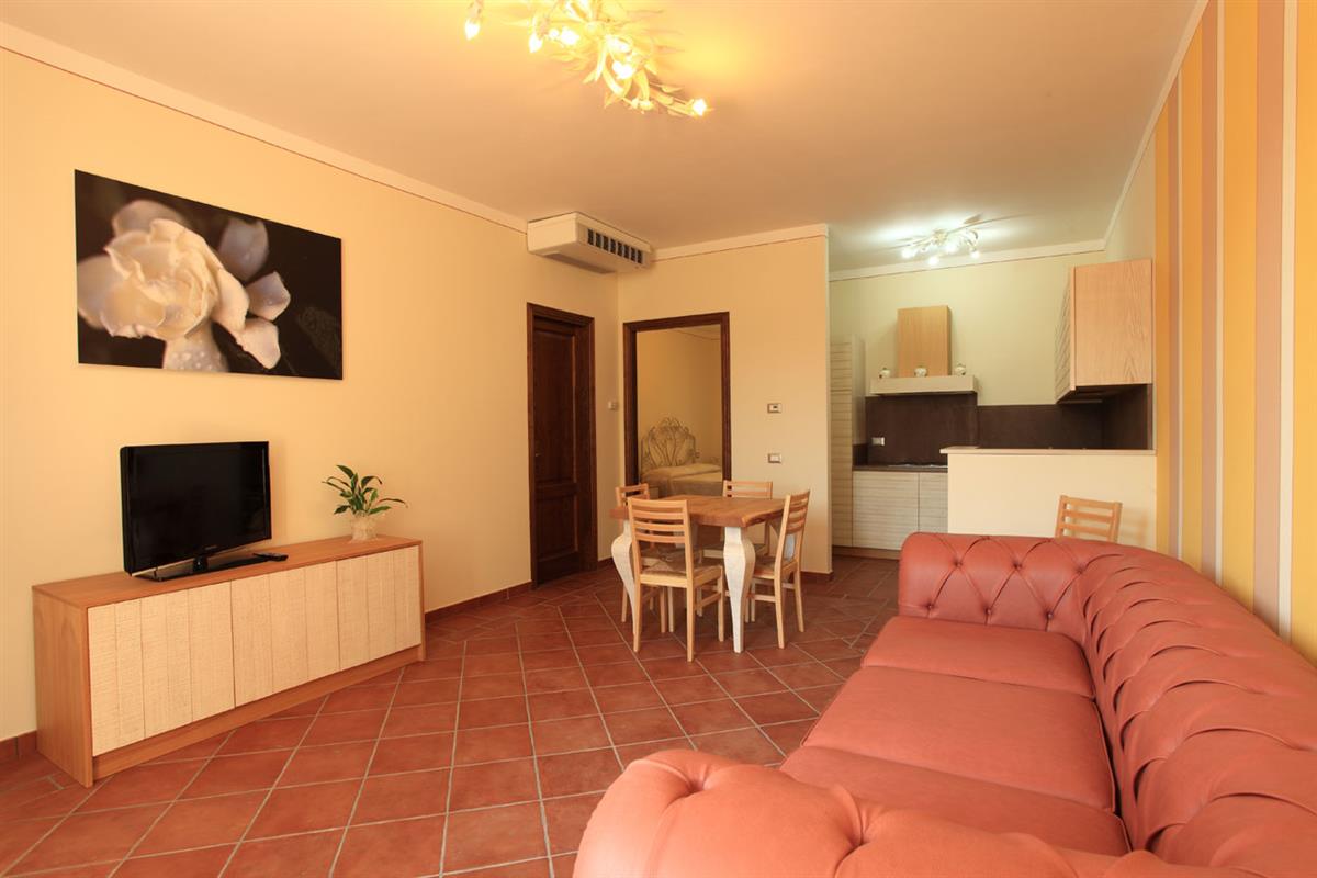 A style that is at once refined and sober characterises this ground-floor apartment where delicate surroundings give life to very liveable areas. The kitchen-living area has a double sofa-bed and TV; the double room with TV faces onto the pinewood: all you have to do to enter the wonderful world of nature is open the French door. There is also a disabled bathroom.