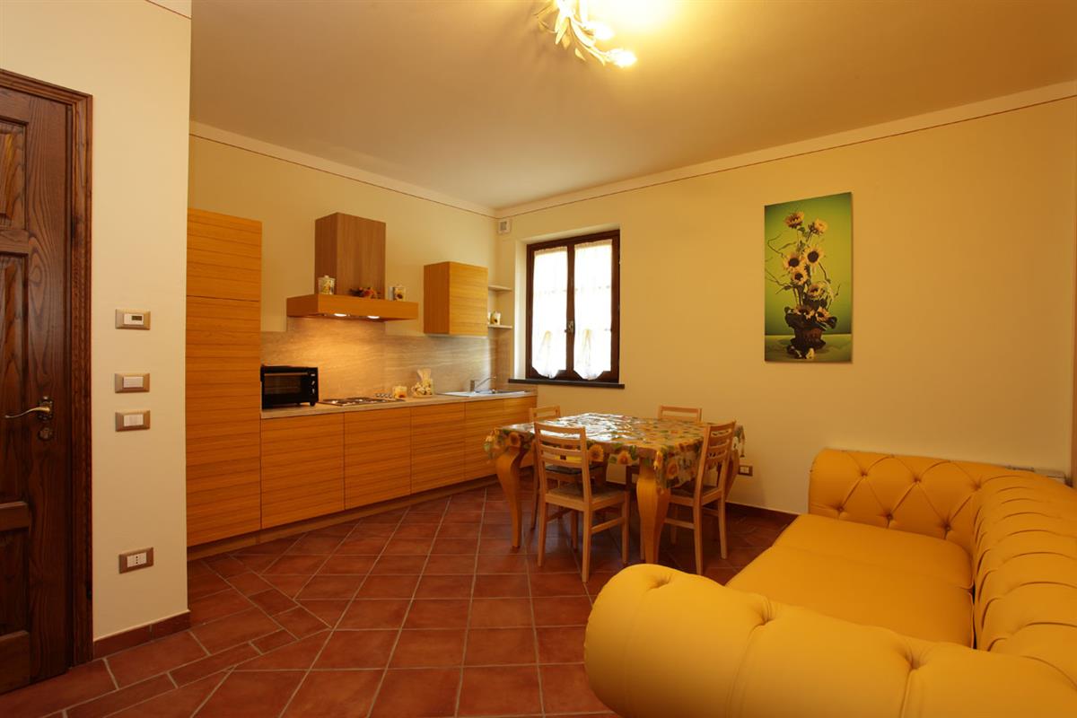 Bearing the name of the majestic tree which is extravagant in its Autumnal fruits and typical to Tuscan woodland, this apartment is the realm of wood furnishings. On the first floor of the structure and complete with balcony from which you can enjoy a panoramic view of the surrounding countryside, the apartment consists of a kitchen-living area with double sofa-bed and TV, a double bedroom with TV, a twin room (beds can be joined together to form a double) and a bathroom. There is a dishwasher in the kitchen.