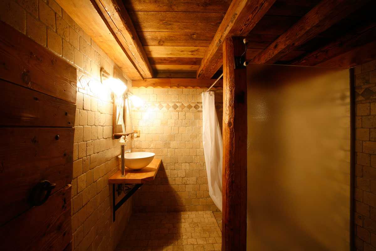 The particularity of a bathroom is the shower installed in the conduit of the old bourne.Â