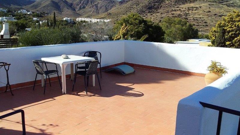 Hermosa casa espaciosa con WIFI para 2 a 10 personas. ubicado en la Urbanización Cortijos Las Negras en el Parque Natural de Cabo de Gata. La casa está rodeada por un hermoso jardín con terrazas y patio. 5 habitaciones con camas dobles, 4 baños con una gran ducha a ras de suelo, 2 de los también con bañera. En la planta baja hay un WC separado. Amplia cocina totalmente equipada y un amplio y acogedor salón.