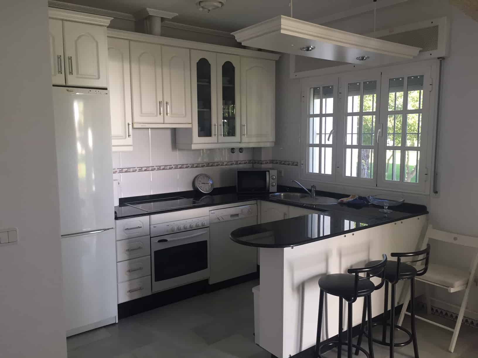 - salón con cocina americana (cocina completa con vitrocerámica, horno, lavavajillas). Además puedes encontrar un mueble de mesa de comedor plegable para 6 comensales, práctico y moderno. Menaje completo.