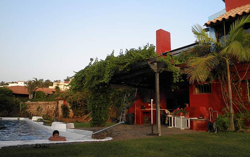 Un balcón o terraza arriba, ajardinado y listo para tomar el sol por la tarde y disfrutar de las puestas de sol sobre el mar disfrutando de un refrigerio, un comedor al aire libre, ubicado en un invernadero para comenzar el día con un maravilloso desayuno con vista al jardín y al mar y Un patio de piedra junto a la piscina, con barbacoa y horno de barro para fiestas y disfrutar de deliciosos asados, son los encantadores espacios abiertos que rodean la casa.