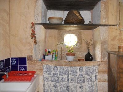 At the back, your view will stretch over the fields and the woods and you can relax in the shade of a huge linden tree planted at the Revolution, near a medieval well, surrounded by flowerbeds and shrubs. various. You will also enjoy the exotic appearance of the garden-olive, almond, apricot, palm trees, magnolia, rosebushes etc ...-
