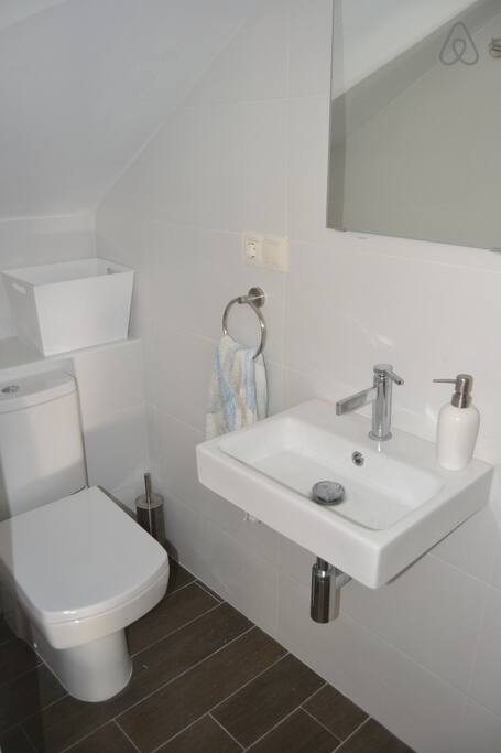 Subimos un tramo de escaleras y están los dormitorios, 2 de matrimonio y 1 con tres camas individuales (1 litera y 1 arrastre), un baño y una zona de lectura.