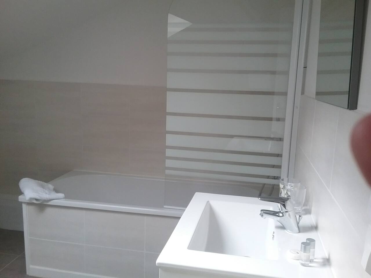 The whole apartment is at your disposal. The apartment is located in a townhouse above a furnishing and decoration shop that closes at 19h.calme