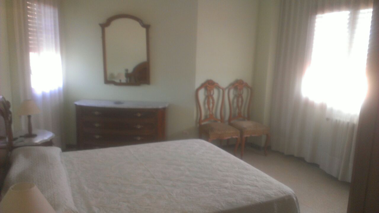 Piso exterior amueblado en pleno centro de Alcañiz. Tiene 160 metros cuadrados, dispone de salón comedor de 30 m2, cuatro habitaciones amplias, una con cama de matrimonio y tres con dos camas individuales. Todas ellas con armarios y mobiliario auxiliar. Dos baños completos. Cocina muy amplia totalmente equipada.