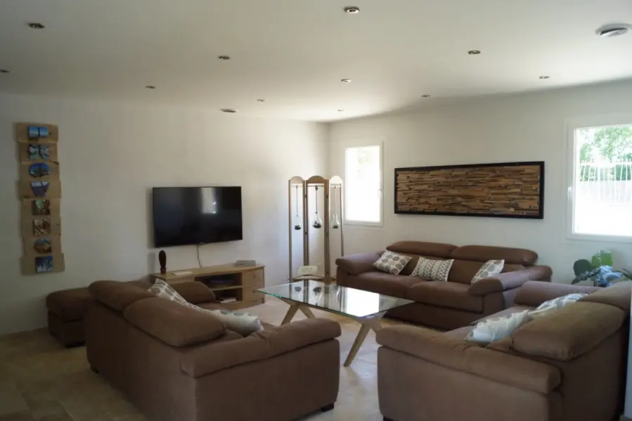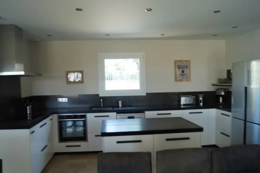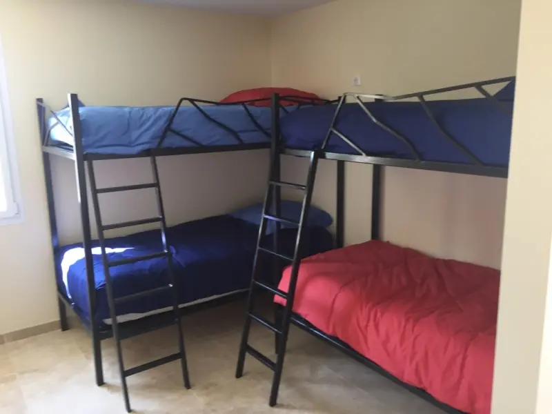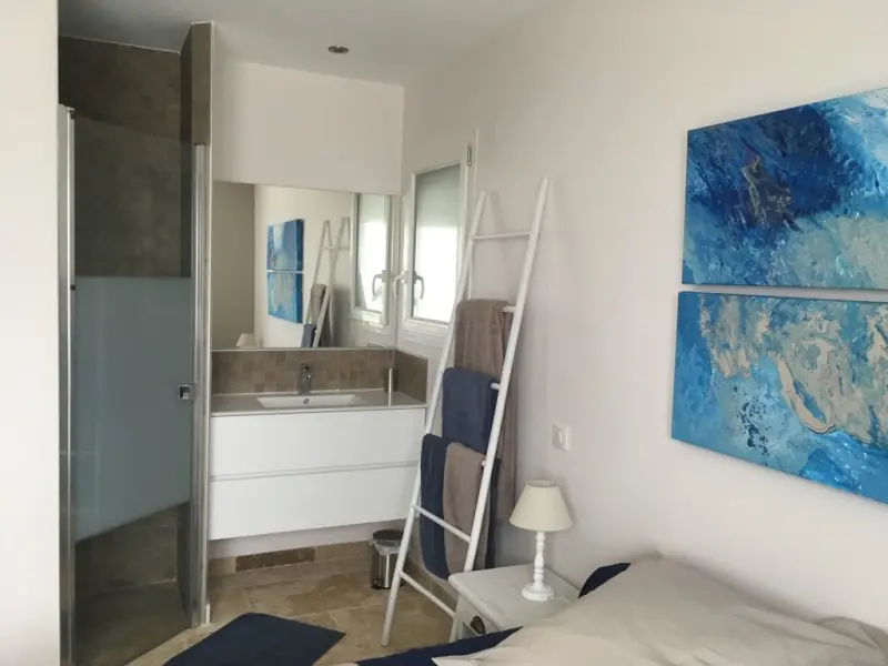 Villa neuve, tout confort, 4 chambres doubles Avec et Une Salle de bains et 1 Chambre Privée (7 personnes: 1 lit Dortoir 140/200 ET5 90/200 2beds s et 3 de haut) avec petit salon, salle de bains et WC .