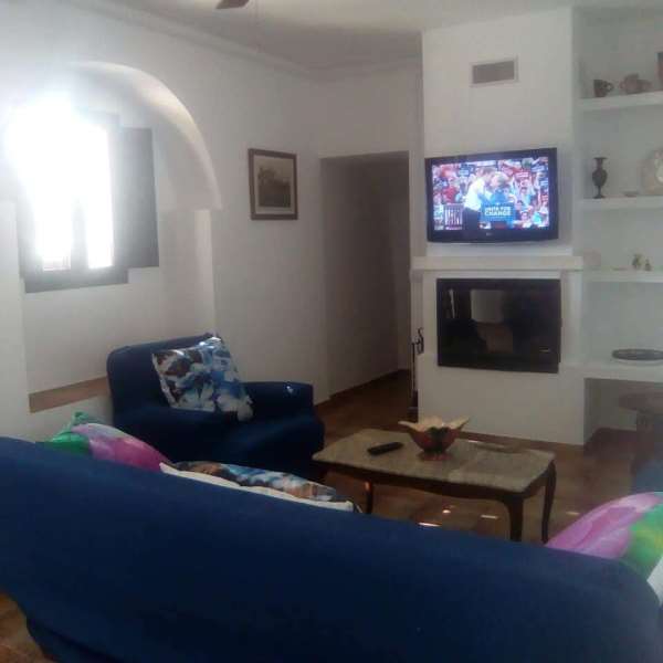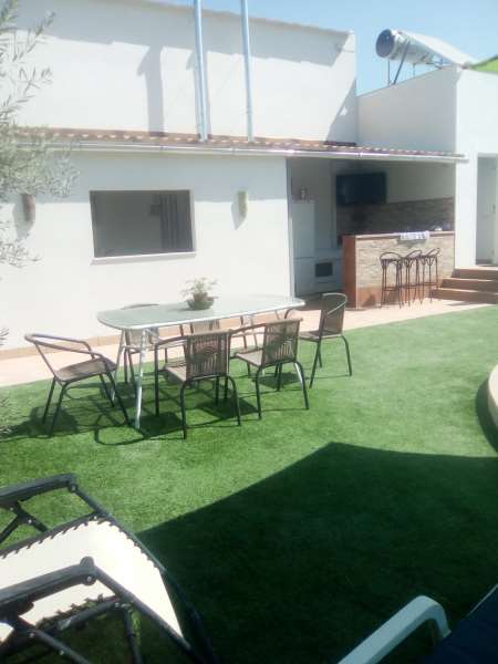 Dispone de cancela automática con mando a distancia, piscina con: césped, tobogán, barbacoa, horno moruno, cocina, fregadero, cuarto de baño, televisión, frigorÃfico, futbolÃn, columpios en zona de juego infantil. En la casa hay chimenea, televisión, wifi las 24 horas incluso en la piscina, cocina de leña además de la de gas, lavadora, menaje de cocina, batidora, frigorÃfico, agua caliente, cuarto de baño con ducha-mampara, secador de pelo, toallas, ropa de cama y mucho espacio en el exterior para que disfrutes de los dÃas de sol hasta en el invierno. Las horas de sol efectivo oscilan entre las 2800 y las 3000 anuales. Además de flores de jardÃn también hay algunos frutales tales como peral, manzano, naranjos, limonero, kaky, nÃspero, ciruelo, higueras y un granado. En el recinto de la piscina se encuentran cuatro fabulosos olivos. En la fachada de la casa hay un espléndido emparrado de uva de mesa. La Casilla Miguelin cuenta en la actualidad con cuatro habitaciones con una capacidad máxima de 10-14 personas, una salita, un salón comedor con chimenea y ventiladores de techo, un cuarto de baño, una cocina campera y un enorme patio con pozo, grifo con pileta y fuente. Todas las dependencias se encuentran en la planta baja. Visite nuestra web casillamiguelin. com Si tienes mascotas, tráelas contigo. Bajo. Garaje. Amueblado. Terraza. Calefacción. Piscina. JardÃn. Se aceptan mascotas Codigo registro turistico: VTAR/CO/00386