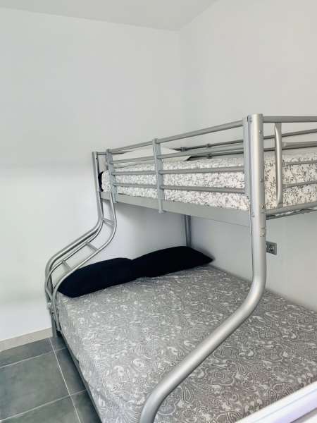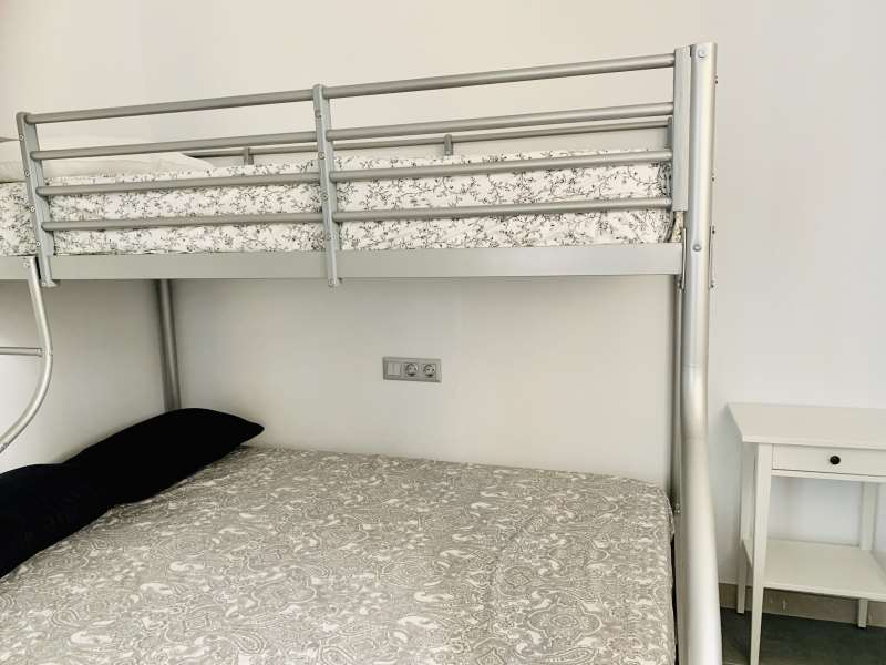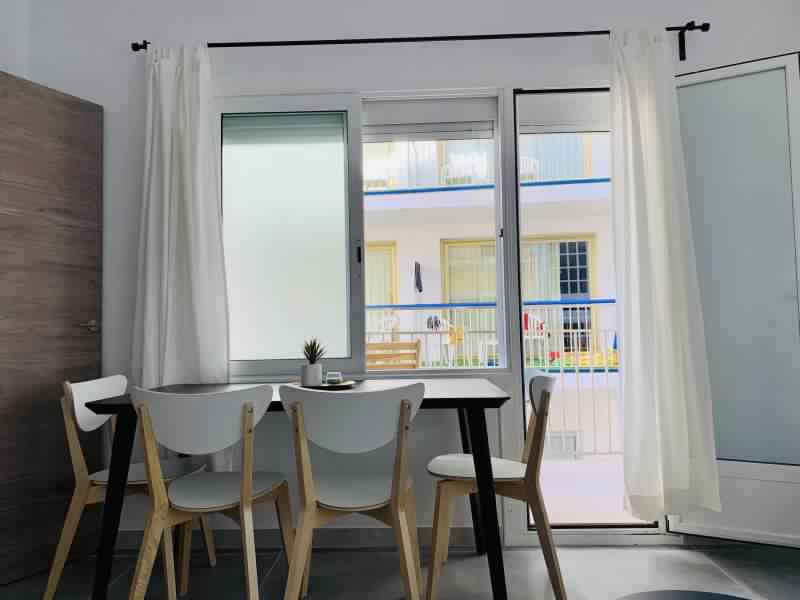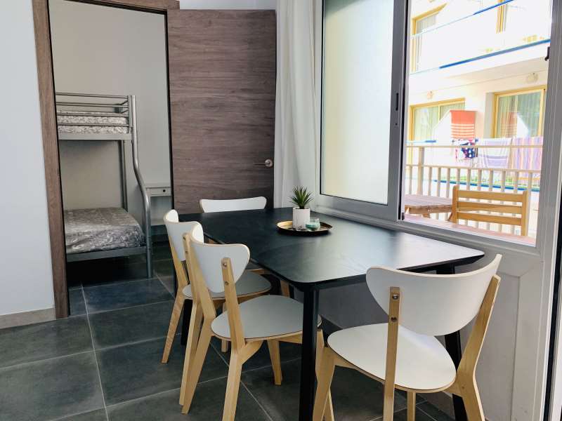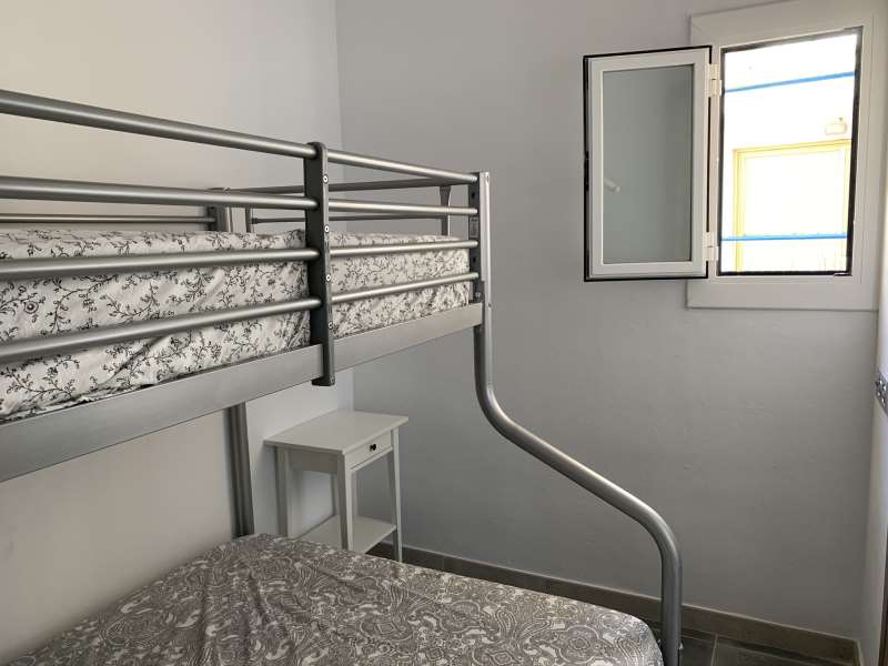 Apartamento vacacional totalmente reformado con mucha luz natural. Su ubicación es excelente, ya que tiene cerca todo tipo de servicios ( supermercados, restaurantes, farmacia, mercado semanal). Es muy soleado y dispone de una magnÃfica terraza para disfrutar que ricos desayunos o deliciosas cenas. Finca tranquila y con ascensor El salón comedor dispone de una mesa con cuatro sillas, un amplio sofá cama, una mesa de centro que puede utilizarse como taburete y una tv. Desde el salón se puede acceder a la terraza. La cocina dispone de todas las necesidades básicas: nevera, extractor, horno, cafetera y menaje de cocina. La habitación principal, tiene una cama de matrimonio, un armario empotrado y una mesita de noche. Tiene una ventana que da al exterior. La habitación secundaria dispone de una litera de una cama inferior de matrimonio y una cama superior individual. Tiene una mesita de noche y una ventana que da al exterior. El baño dispone de una plata de ducha y un mueble para guardar productos de limpieza y higiene personal. La comunidad cómo medida de Seguridad no permite el uso de los apartamentos a jóvenes no acompañados por adultos y además nos exige cópia del documento de identidad o pasaporte. Pediremos que nos manden fotocopia por correo antes de cerrar el acuerdo. 1ª Planta.