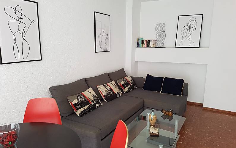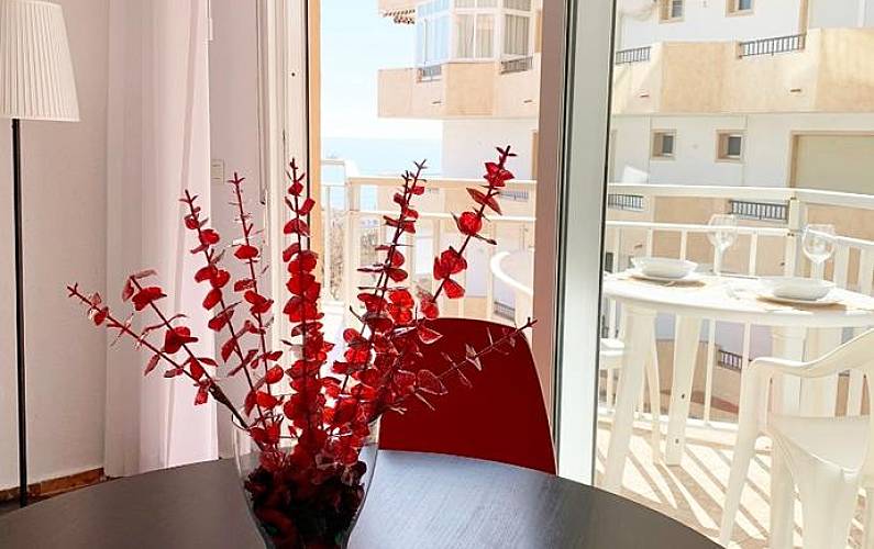 Apartamento luminoso en primera lÃnea de playa, con vistas al mar desde salón y dormitorios. Tiene una gran terraza desde la que se puede tomar el sol desde primera hora de la mañana y contemplar el mar. Dispone de conexión wifi de fibra óptica, incluida en el precio, tv smart ,que le permite acceder a Netflix,movistar, asà como a canales extranjeros. Puede acceder a parking público de plazas reducidas y piscina. Cocina y cuarto de baño completamente equipados.