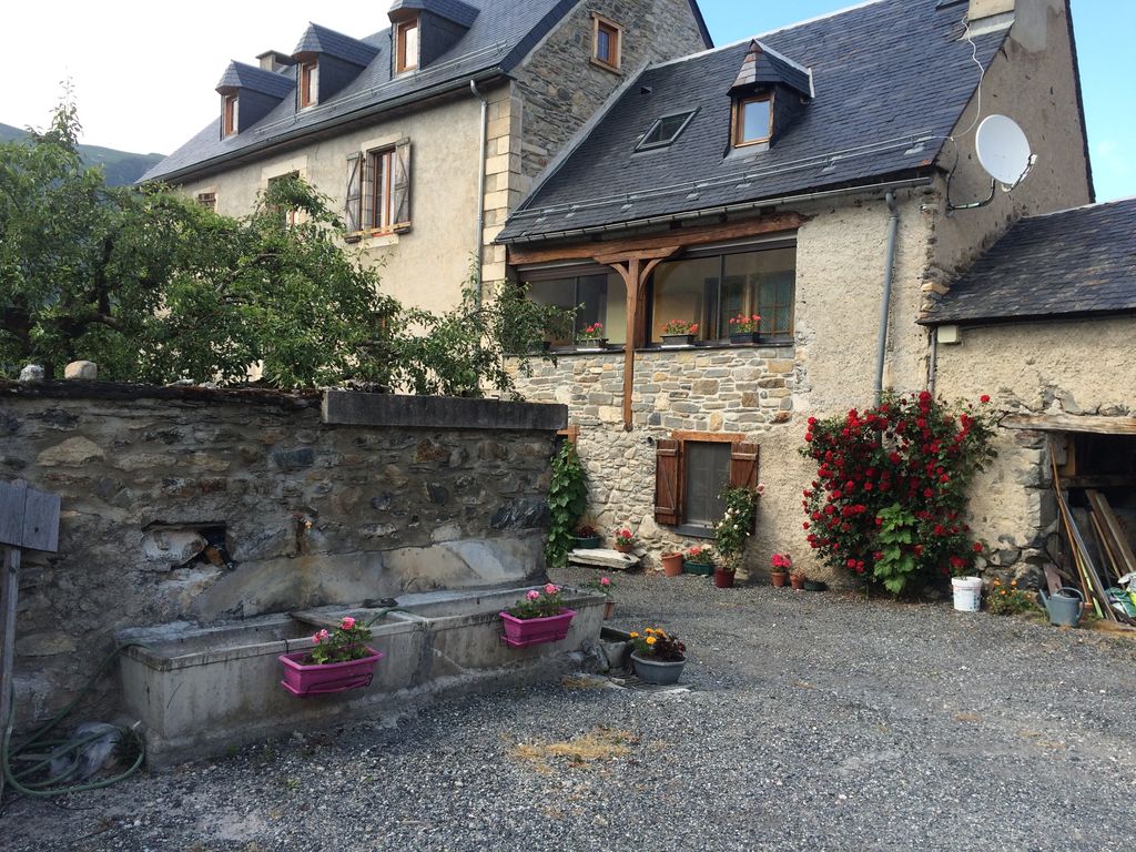 5mn from Saint Lary rents typical house. Sleeps 7, 3 bedrooms, one with sink, a bathroom, 2 toilets, a kitchen-living room with wood stove and dishwasher storage room for skis, bicycles, washing machine, 2nd fridge with freezer, ... south facing, garden, private parking. Lovely view of the valley, 5 minutes from shops. Near Spain, and other stations ..