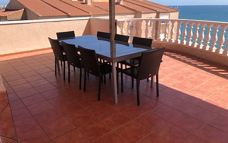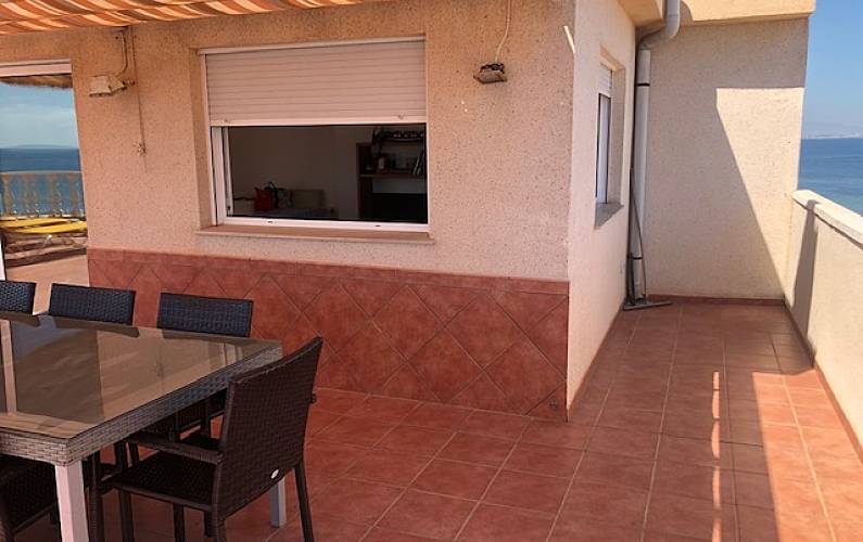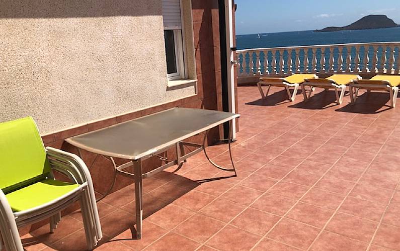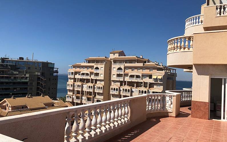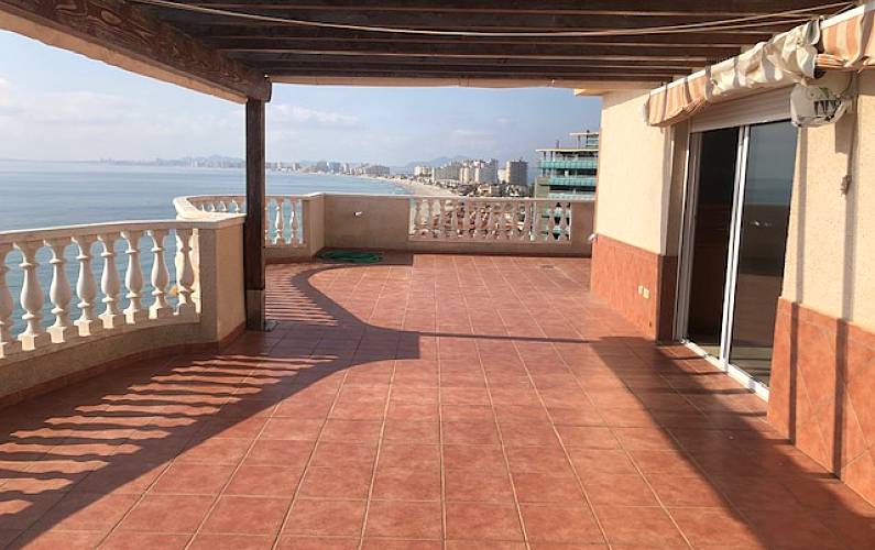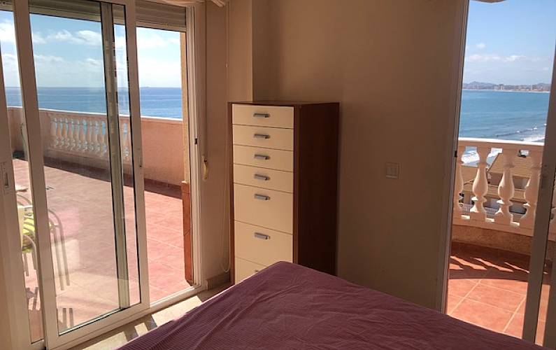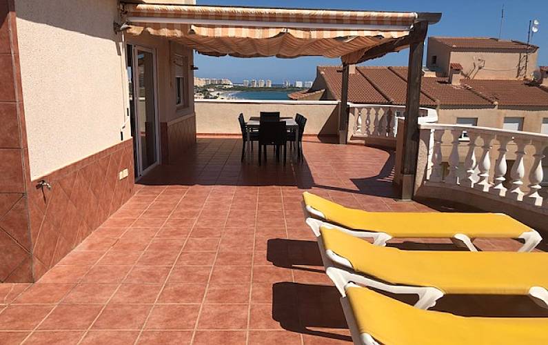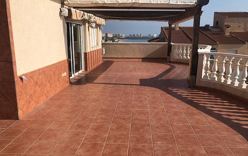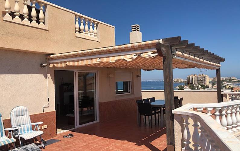 Ático de lujo en primera línea Mediterráneo, cabecera de playa y Mar Menor cruzando la calle. Piso de 80 m2 y 80m2 de terraza que bordean la casa, todas las habitaciones exteriores, con armarios.