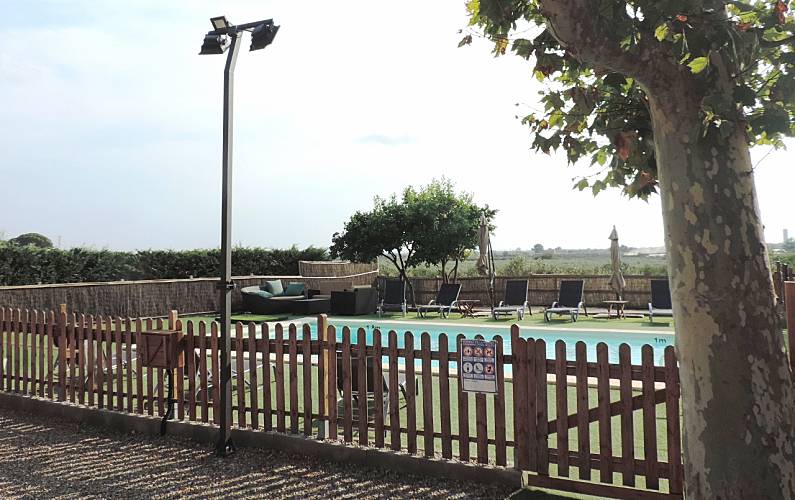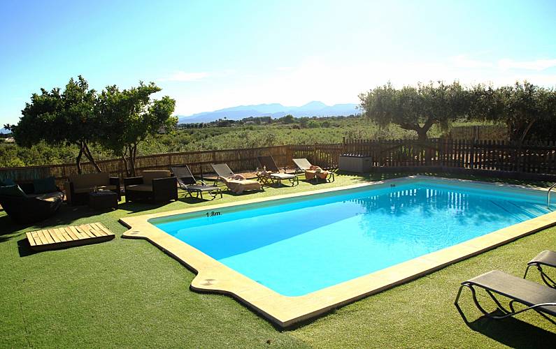 A pocos metros de la casa, se encuentra la piscina de 5 x 9 m. en la que podrá tomar un baño incluso en los dias soleados de primavera y otoño gracias a su manta térmica que mantiene el agua a buena temperatura. También podrá tomar el sol en sus cómodas tumbonas.