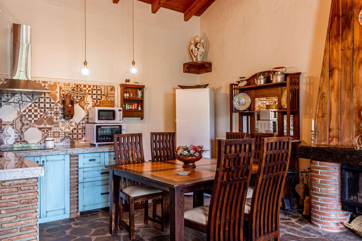 La casa principal dispone de dos plantas, y un espacio habitable en los que la decoración muebles antiguos rústicos y el uso de colores cálidos, crean un ambiente extremadamente acogedor.