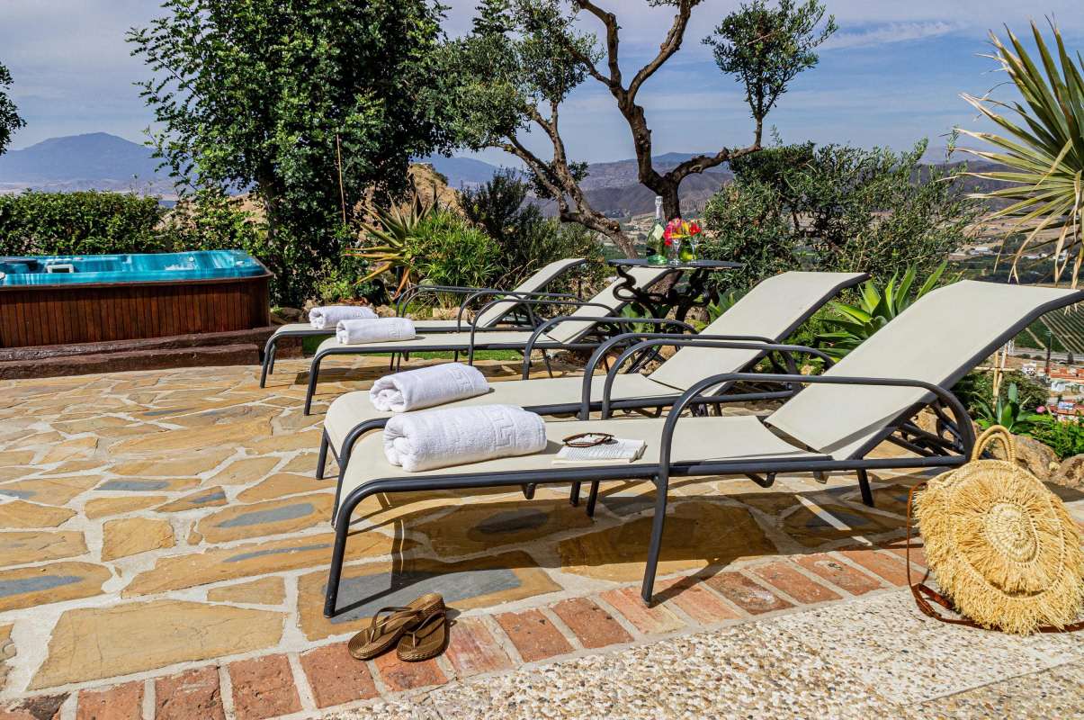 Si usted quiere tomar el cálido sol del verano andaluz, sólo tiene que echarse en su fabulosa cama balinesa o si prefieres en una de las tumbonas, y en cuanto quiera refrescarse, en su fabuloso jacuzzi exterior o en su piscina privada con cascada la acogerá con aguas refrescantes. Junto a la barbacoa tiene un pequeño estanque fuente y cascada con nenúfares.
