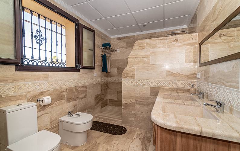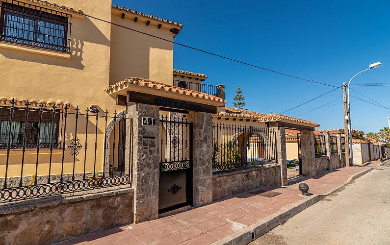 Preciosa villa a 50 metros de la playa. Consta de unas zonas exteriores maravillosas con hamacas, barbacoa y piscina para disfrutar al máximo de sus vacaciones. La piscina está disponible los 365 días del año a una temperatura envidiable. La Villa se divide en dos plantas: