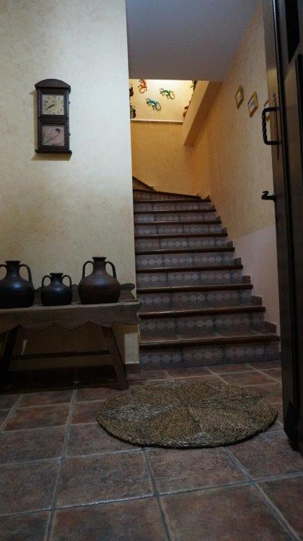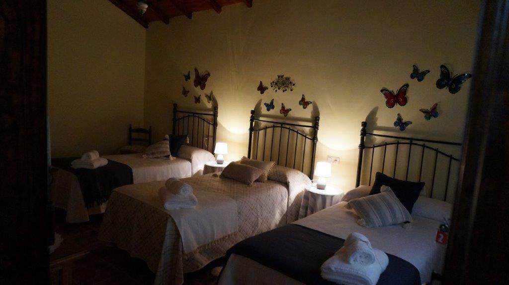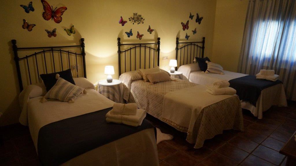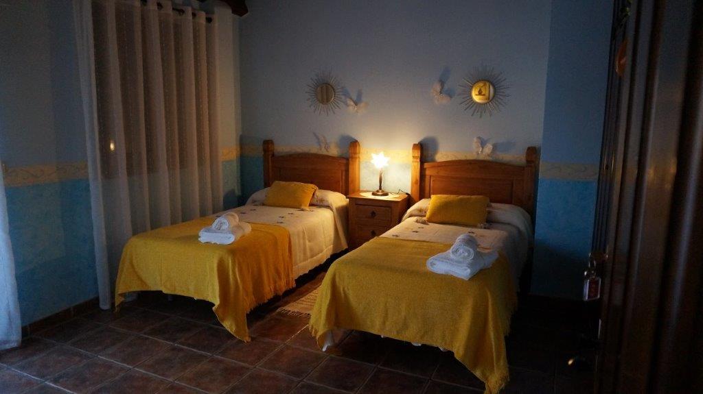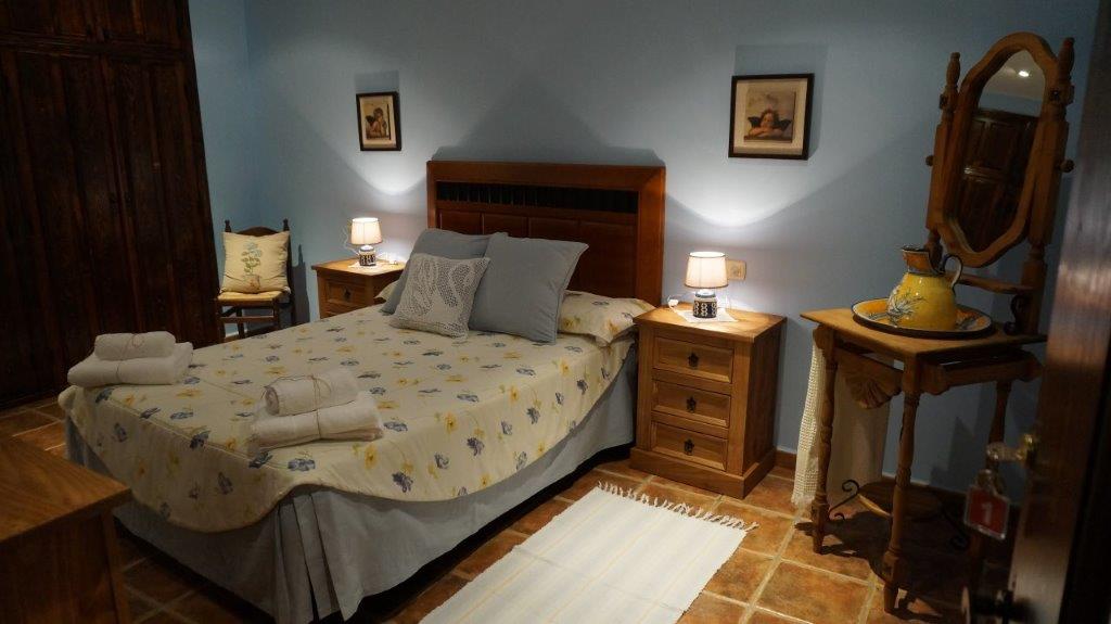 Salón comedor con aire acondicionado frio/calor, aseo, habitación de matrimonio con baño completo incorporado, y, acceso a patio, donde se encuentra la lavadora, con cama de 1,35. En planta superior disponemos de habitación triple, con tres camas de 0,90 y posibilidad de supletoria, baño completo, una habitación con dos camas individuales de 0,90 con acceso a balcón y otra habitación de matrimonio con cama de 1,35. En total disponemos de cuatro habitaciones para 9 personas con posibilidad de 10. El alojamiento tiene calefacción eléctrica en todas las dependencias incluido los baños, y aire acondicionado en zonas comunes, (salón).. En los alrededores se pueden practicar actividades como rutas a caballo y quad,