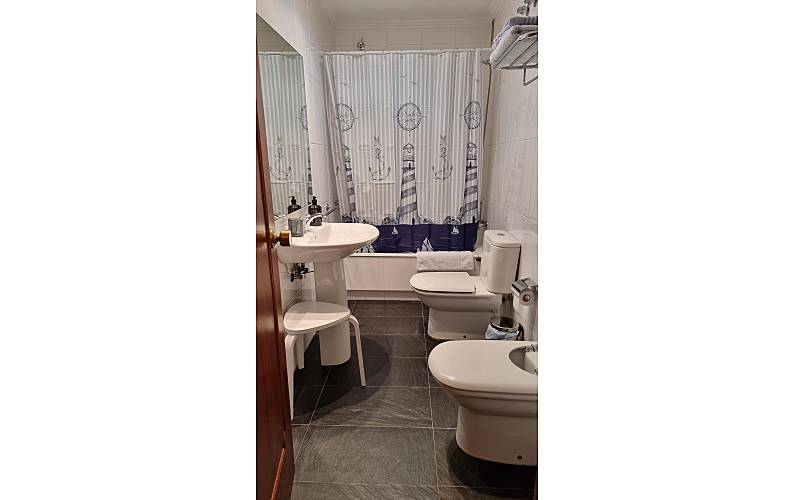 Precioso piso marinero con impresionantes vistas mar. Está justo al lado de la playa y del paseo marítimo. Con tres dormitorios, uno de cama de matrimonio con baño en suite, otro con literas, y el tercero con cama de 120. Tambien tiene un despacho con sofá cama doble. En total pueden dormir comodamente 7 personas. La cocina está totalmente equipada y dispone de otro baño completo. Lo rodea una terraza con preciosas vistas directas al mar. El piso está totalmente equipado con toallas y sabanas de calidad. La plaza de garage está incluida en el alquiler.