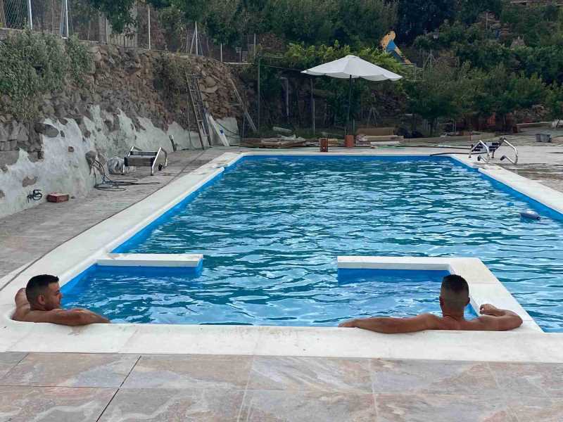 – Para refrescarte, sumérgete en la piscina común, o simplemente acomódate en las tumbonas bajo los árboles frutales.