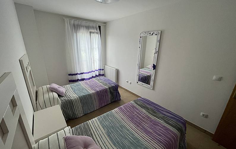 Apartamento de dos habitaciones dobles y terraza en urbanización privada con piscina. Plaza de parking propia. A menos de 1km de la playa de Berellin.