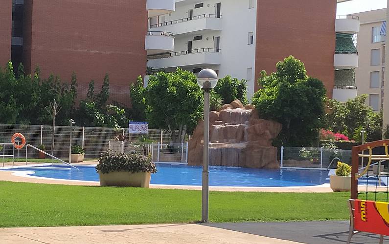 Bonito apartamento de 2 dormitorios con armarios empotrados y terrazas en cada uno. Dormitorio principal con suite y otro baño completo con ducha. Aire acondicionado centralizado. Salón comedor con sofá cama y gran terraza. Cocina independiente totalmente equipada, lavadora, lavavajillas, microondas, etc. Galería. Piscinas comunitarias, plaza de parking en el edificio, zona infantil, zona deportiva para básquet, tenis.