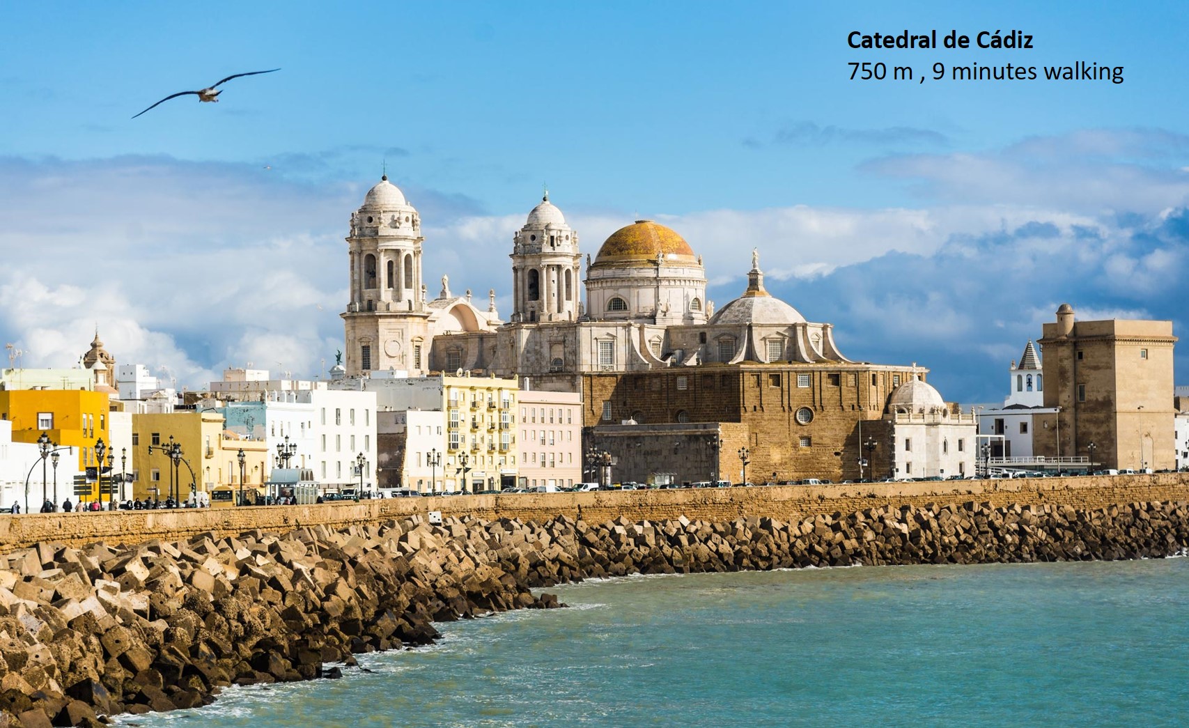 Centro de ciudad, ambiente residencial e histórico rodeado de parques, plazas, bares, cafeterías, museos y paseo de la bahía de Cádiz.