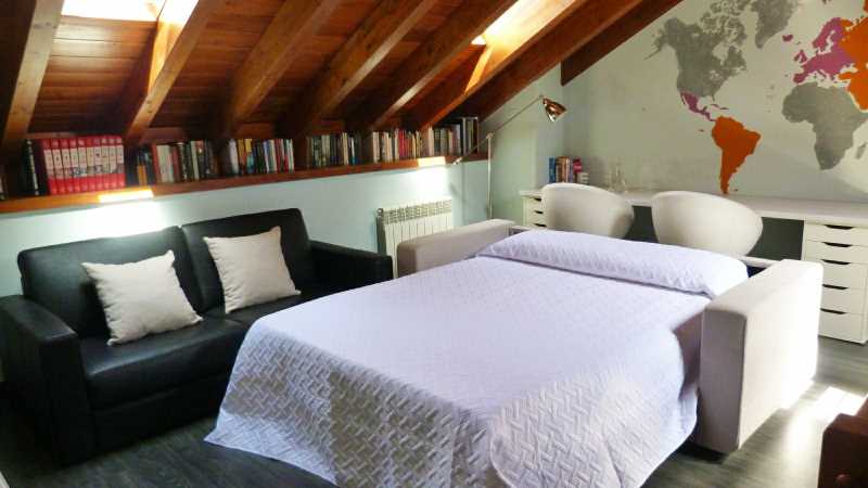 La vivienda dispone de tres domitorios, dos de ellos de matrimonio y uno doble. En el altillo que hace a su vez de dormitorio con sofá cama hay un proyector con bluetooth y una diversa colección de libros y juegos de mesa para toda la familia.