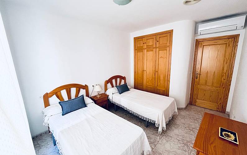 Excelente piso seminuevo, en urbanización "La Torre", a 30 m. De la playa. 4ª planta con ascensor, orientación Este (poco caluroso), 80 m/2; 2 dormitorios , uno con cama de matrimonio y el otro con dos camas individuales, salón con sofá cama, cocina totalmente equipada, con lavadora, lavavajillas horno, frigorífico etc. Terraza exterior con vistas al mar. Aire acondicionado en los dos dormitorios y en el salón. Piscina comunitaria en la urbanización. Plaza de garaje accesible con el ascensor. Se alquila la solo por quincenas o mes completo.