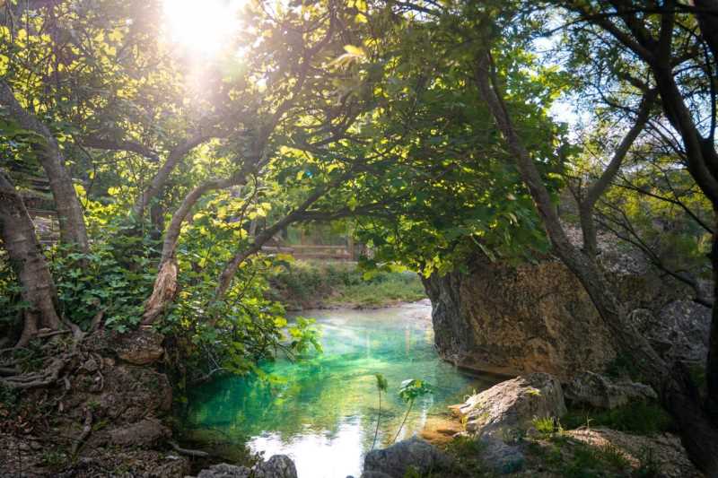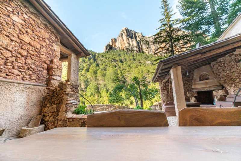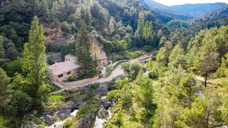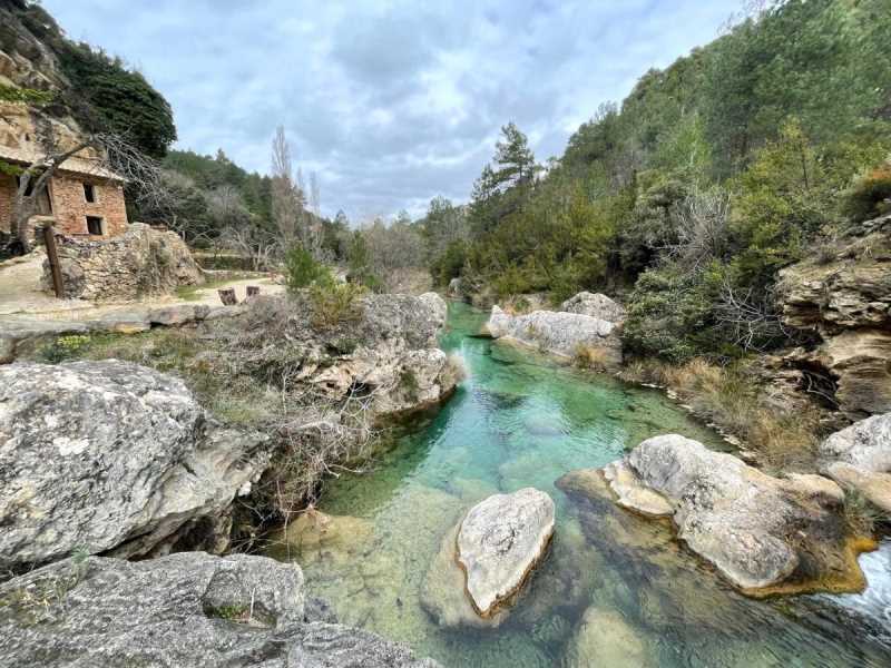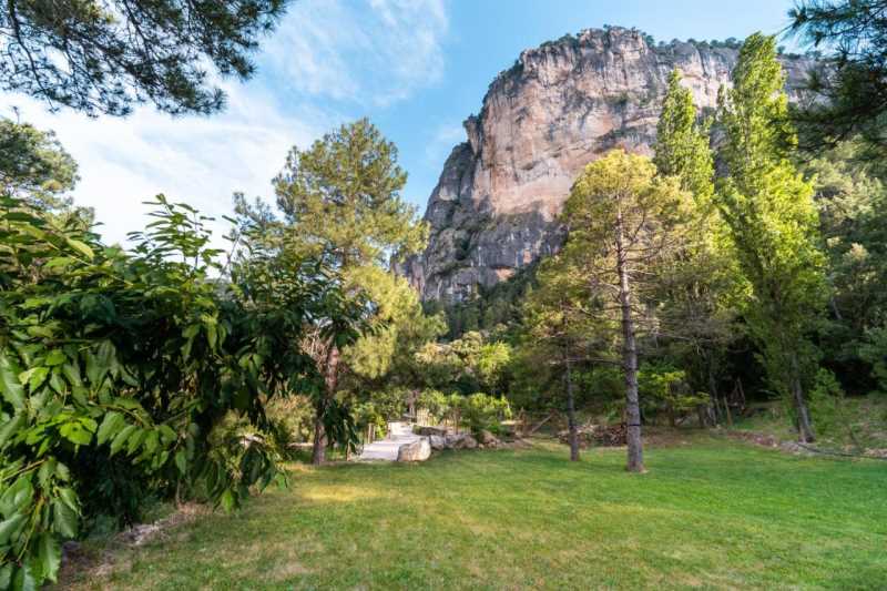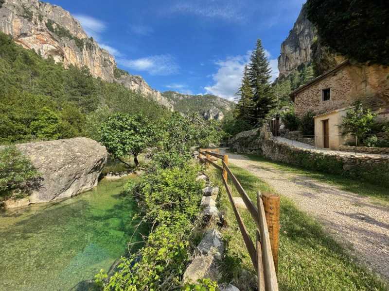 Las aguas verdes y cristalinas del rio Matarraña surcan los macizos de rocas calcáreas que forman una simbiosis única. El sonido del agua te envuelve y llena de armonía todo el entorno. Entre las grandes paredes de roca y el cauce del rio se encuentra esta antigua masía.