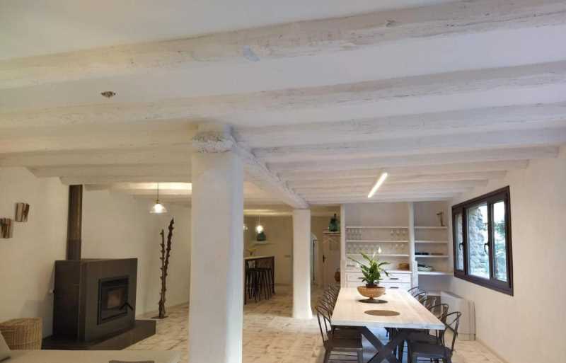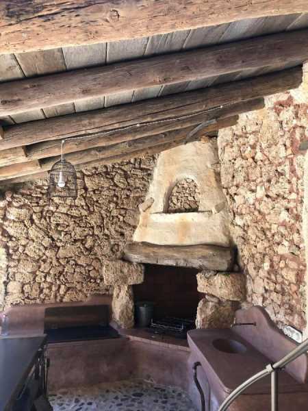El porche cuenta con una barbacoa y una mesa alta en la que poder cocinar una paella al aire libre (proporcionamos todos los utensilios).El patio es amplio y lo cruza un pequeño arroyo, en la parte de arriba del mismo hay una mesa para comer y en la parte abajo hay un espacio con césped y un lavadero antiguo.