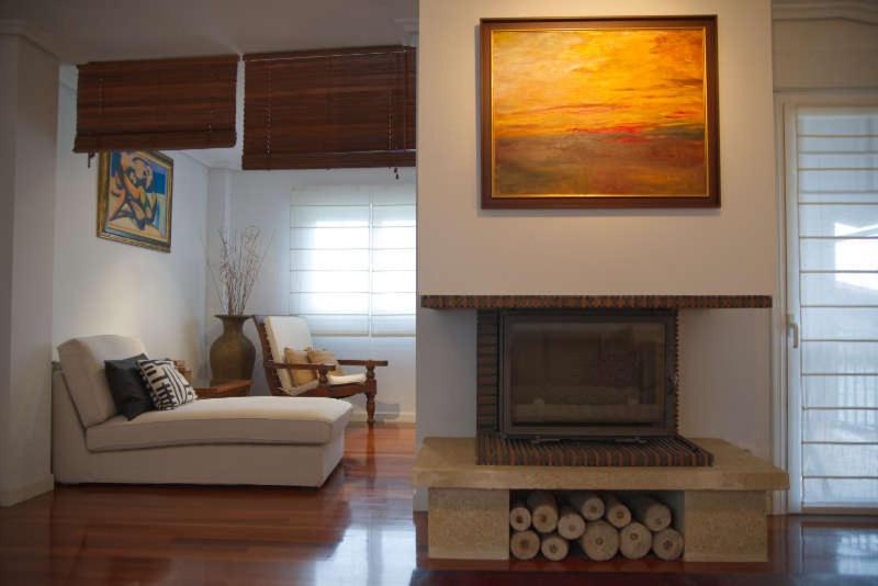 Salón espectacular con dos amplios y cómodos sofás y con espaciosa terraza con vistas al mar.