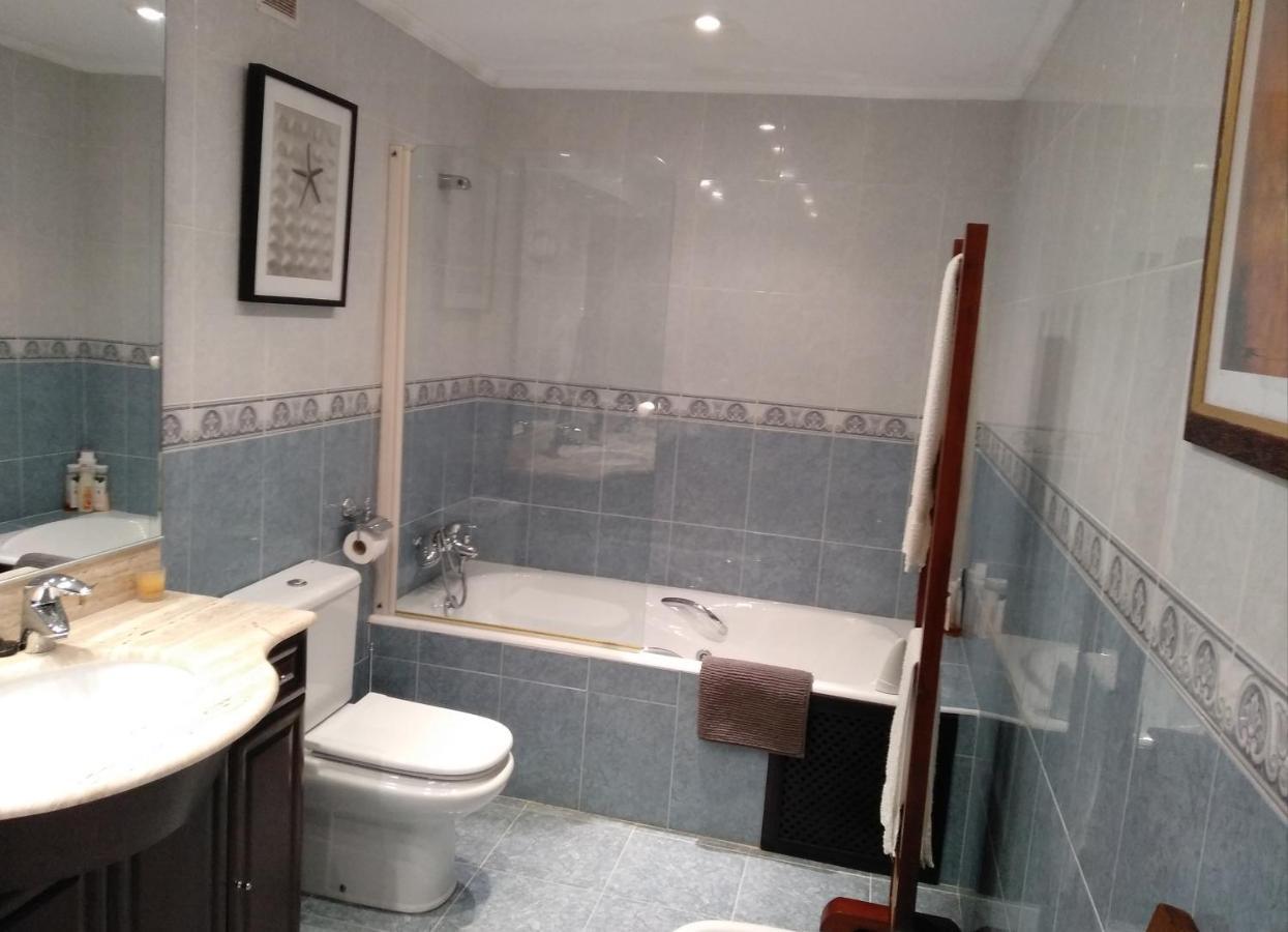 Tres baños completos, uno grande con bañera de hidromasaje.