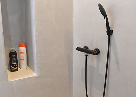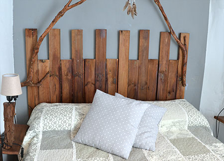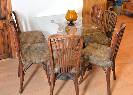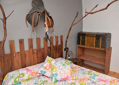 Acogedor y campestre, en este apartamento la madera y la piedra son protagonistas. Al entrar, lo primero que destaca es su hermosa mesa de cristal para 6 comensales. A un lado, el acceso a dos habitaciones con camas de matrimonio, cada una de ellas con televisor y decoradas con elementos pastoriles y naturales. En frente accedemos a un hermoso baño con un elegante lavamanos de piedra natural y un mueble de madera. En el suelo, hojas de orón naturales cuidadosamente repartidas se encuentran conservadas mediante resina.