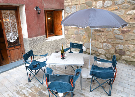 En la salida trasera, un espacio en la calle donde se pueden colocar mesa y sillas plegables con un parasol, ideal para comidas al exterior en verano.