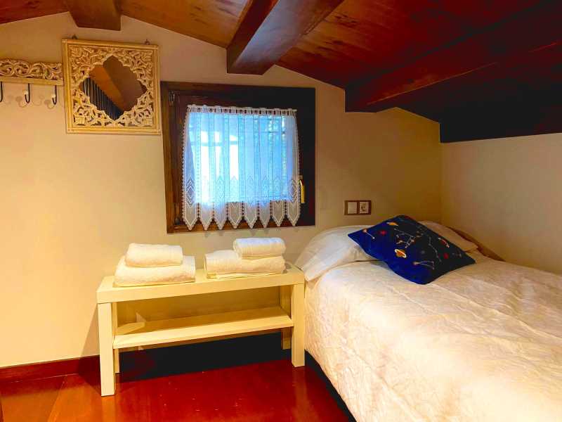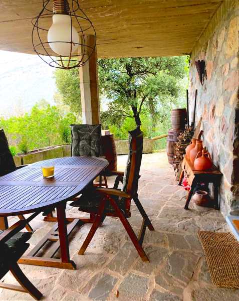 El alojamiento es una casa pequeña, muy acogedora y luminosa. Tiene dos habitaciones y un altillo, baño, cocina y una sala grande con chimenea, terraza y porche, rodeada de bosque de robles y encinas.