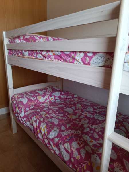 Apartamento en Miami Playa en Primera línea de Mar con dos habitaciones, una de ellas con cama de matrimonio y la otra con literas + 1 cama de 90, cocina completamente equipada, 1 baño con plato de ducha y un salón comedor con acceso directo al balcón , también tiene una terraza muy amplia donde podrás encontrar todo lo necesario para cenar en las noches de verano.