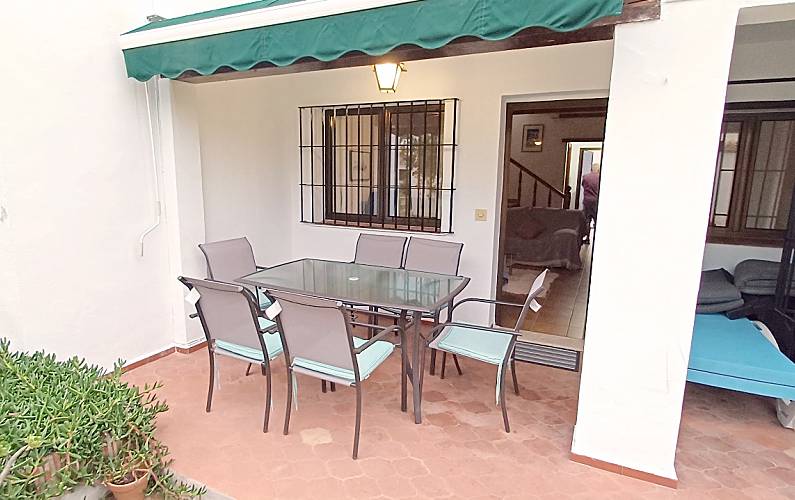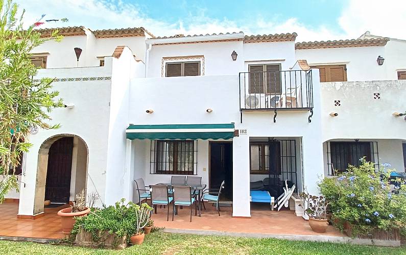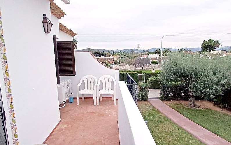 Chalet adosado de dos plantas, en la planta inferior se encuentra un aseo, una cocina independiente, un porche, salon y salida directa a las zonas comunes. En la planta superior se encuentran tres dormitorios (uno con baño incorporado) y otro cuarto de baño,y una terraza amplia con vistas a las zonas comunes. Todos los dormitorios y el salon tiene aire acondicionado frio/calor. Wifi . Se puede aparcar en la propia puerta de la casa, dentro de la urbanizacion. .