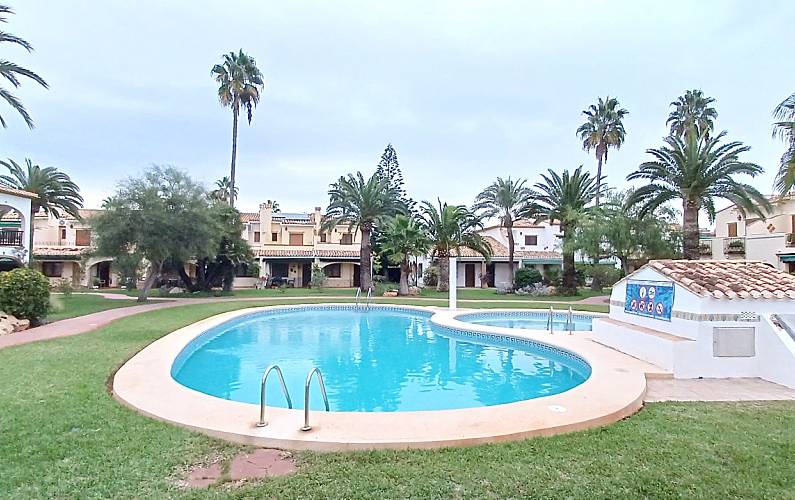 Urbanizacion cuidada, con piscinas y amplias zonas comunes a las que se accede directamente desde el porche trasero.