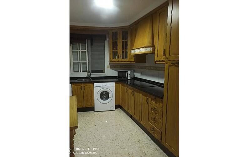Piso con 3 habitaciones, dos baños, un trastero y cocina y salón muy grandes. Unos 90 metros cuadrados.