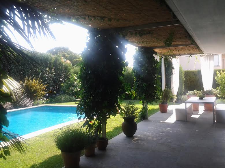 Casa con gran jardin y piscina;6 dormitorios, 3 de ellas suites; 2 baños adicionales y un aseo;comedor, lavandería y parrilha.