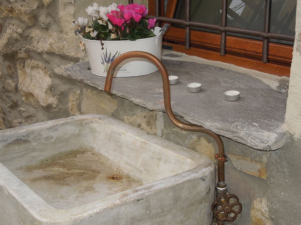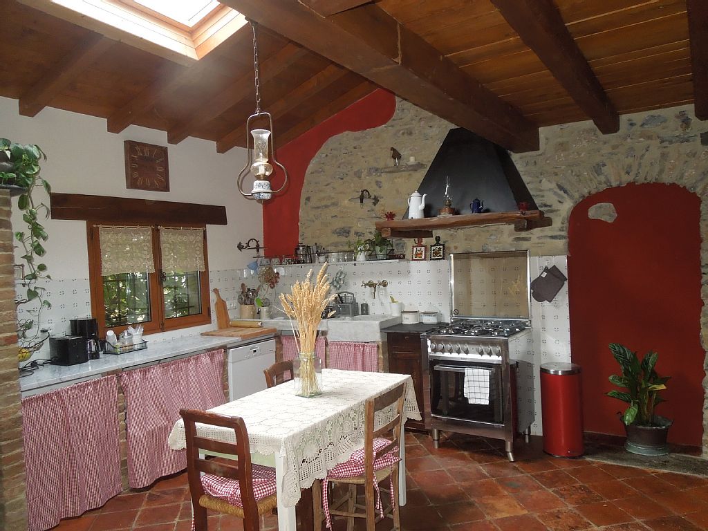 Entering through the old gate, which uses keys completely different from the traditional ones, you can see the large kitchen, with terracotta tiled floor and recovery from the deep red color, the kitchen is simple yet well equipped, with gas cooker five stove, convection oven, large marble sink, dishwasher, large pantry closet, refrigerator with freezer, coffee machine, coffee maker, toaster, microwave etc. A large livingroom with TV, stereo, armchair and antique iron bed and beaten by a half square that serves as a sofa bed and all occurrence. A bathroom with a shower made from a millstone for grain, ancient marble sink, toilet, hair dryer, towels, etc.