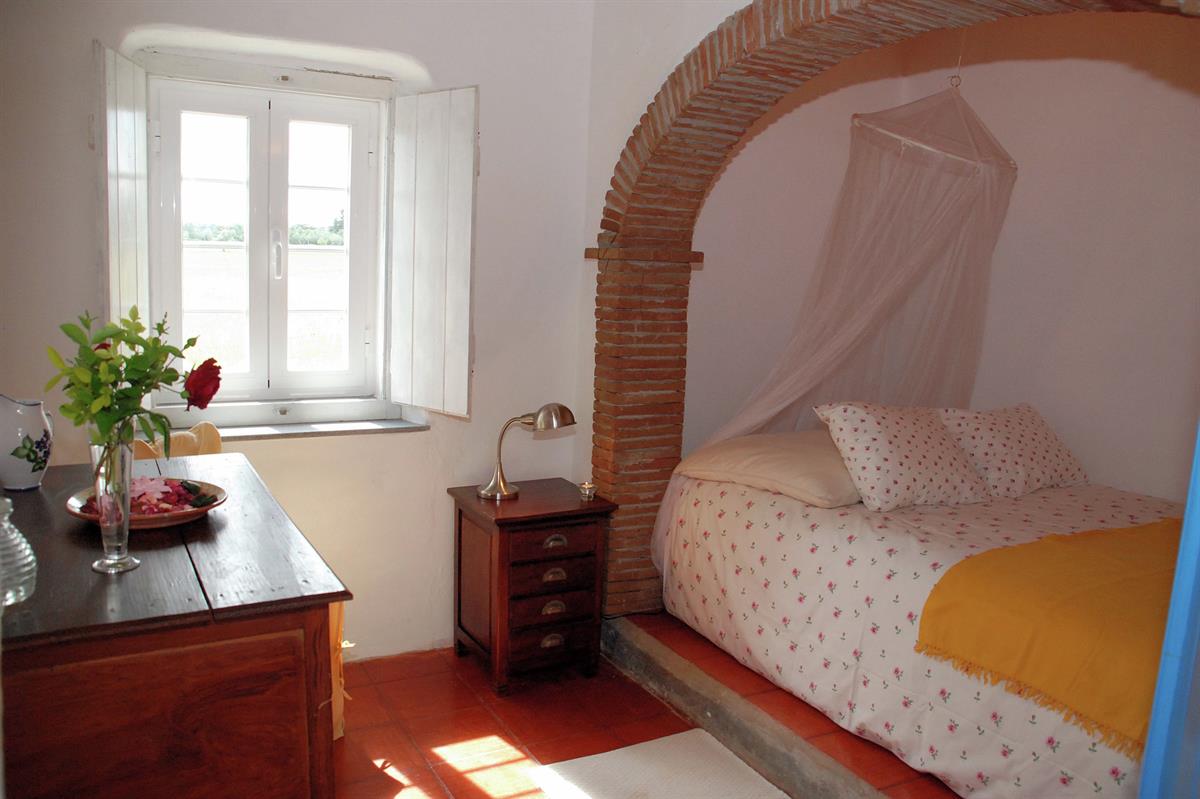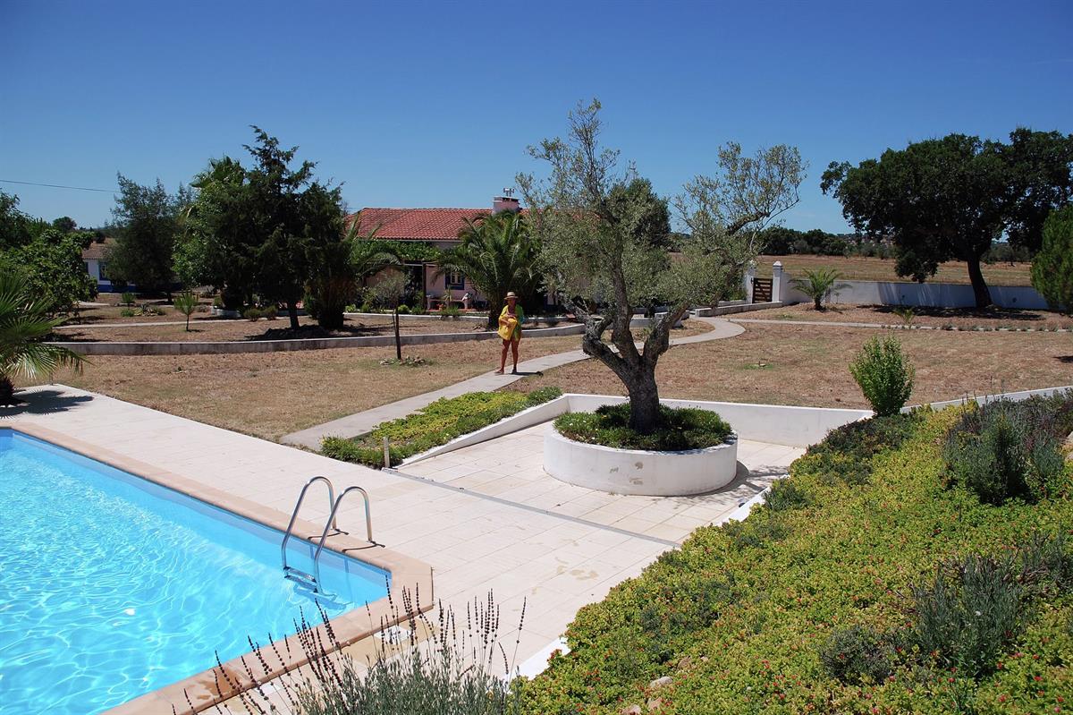 Hundred year old renovated house that some 1.5 kilometers outside the lovely white village lies Alcáçovas. Besides a hundred olive trees are cork oaks, eucalyptus, orange, peach, fig and lemon trees. The mansion is a large terrace with pergola in summer is covered with a vine for shade and filtered light creates beautiful. On the veranda, you evening barbecues and enjoy the sounds of nature. The pool is located on the ground at some distance from the house so privacy and tranquility are guaranteed. In the adjoining meadows, grazing cows, sheep, horses and goats. The gentle tinkling sound of bells sounds pleasant and never boring. Alcáçovas located 30 km from the beautiful medieval city of Evora (Unesco World Heritage) with terraces, restaurants and shopping streets and modern shops.