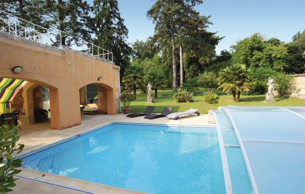 This elegant 18th-century château stands in 2.7 hectares of walled grounds, in an idyllic peaceful setting of imposing trees with a large formal garden with statues. The superb mosaic tiled swimming pool has a lovely covered terrace, which makes the ideal place for dining in the shade. Completely modernised, this side part of the château is spacious, and modern. Located in the little village of Burie with shops, it is in an area rich in history and culture, with the cities of Cognac and Saintes only a twenty minute drive. Tours of the distilleries and boat trips can be taken, as well as classical and jazz festivals and their beautiful golf courses. For a day out, Fouras is a short drive away and visitors can take a ferry to Ile d'Aix, the last retreat of Napoleon.