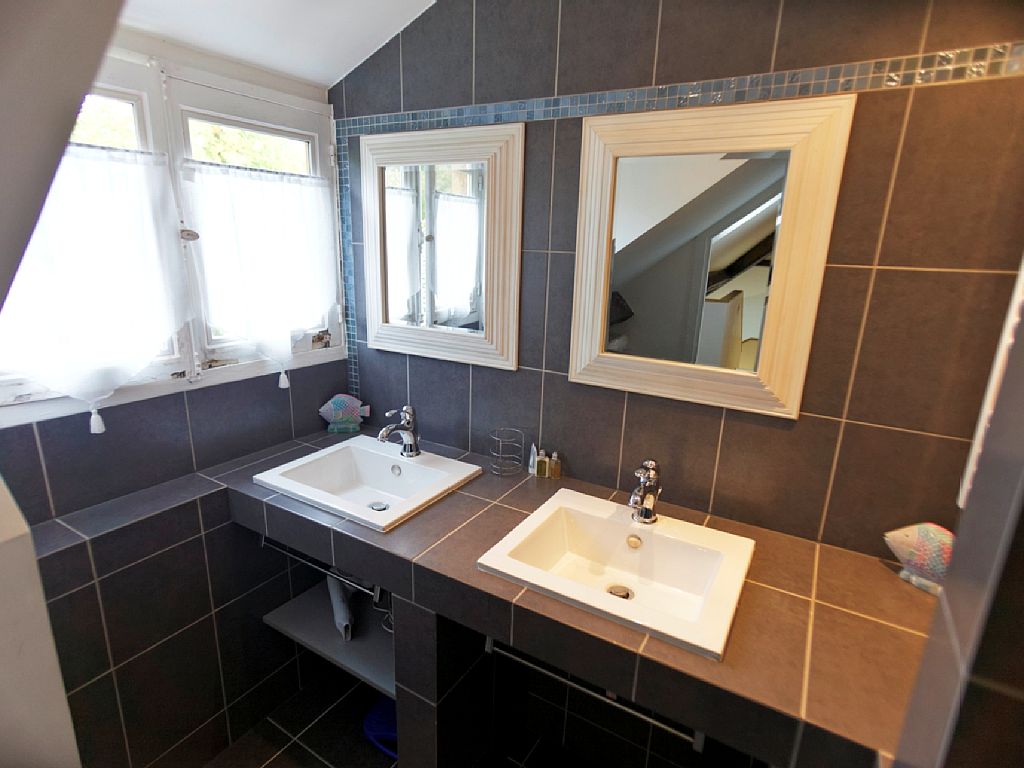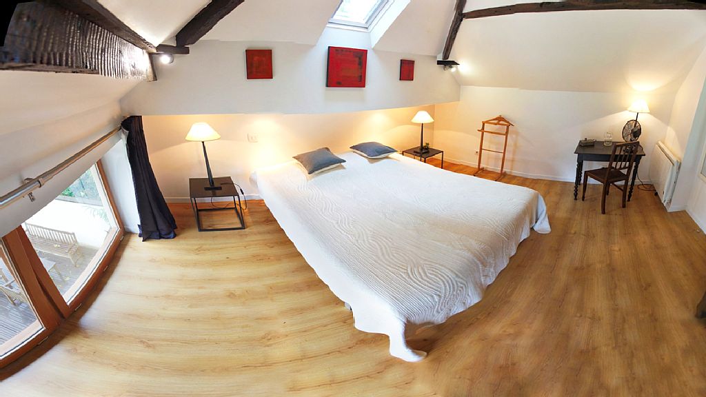Double spacious living room, open dining-room on modern well equipped kitchen, 3 bedrooms * 1 master bedroom with bed 160 cm, * 1 bedroom with 2 beds 80x200 cm (plus mattress 130 cm mezzanine), and 1 ground floor bedroom with a bed of 140 cm and a shower room, 1 second bathroom, 3 toilets (1 per level).